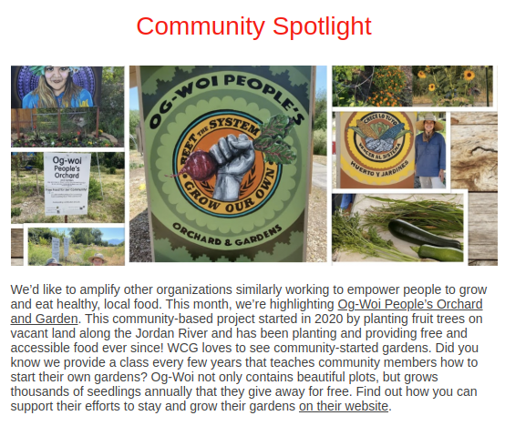 Thank you Wasatch Community Gardens for the community spotlight in their newsletter about the Og-woi!